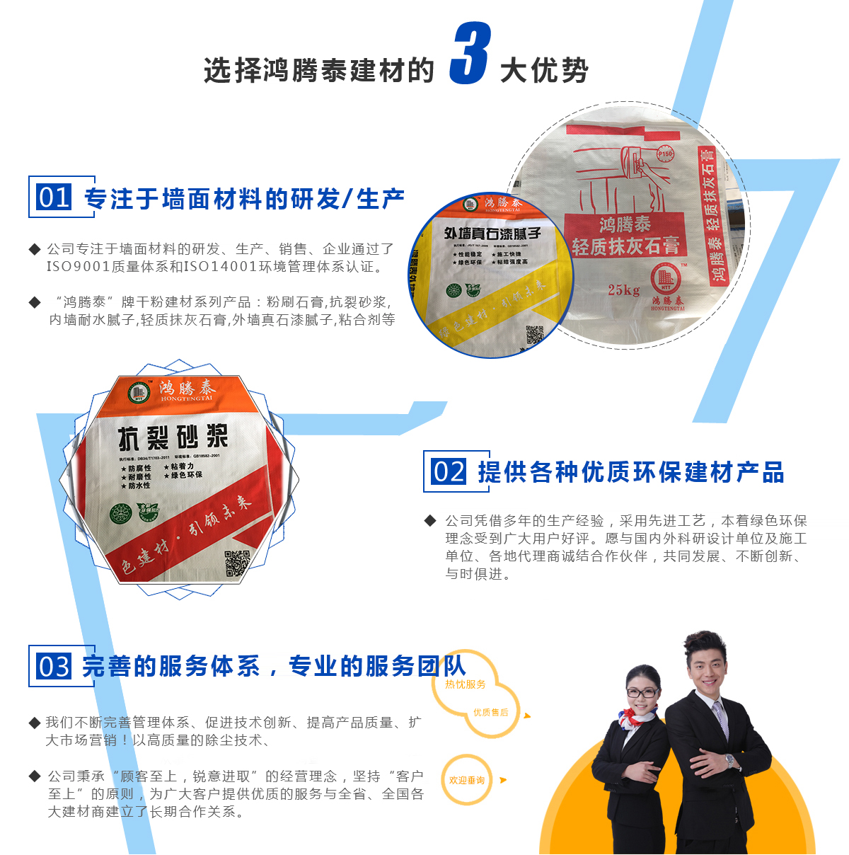 安徽鴻騰泰環(huán)保建材有限公司,坐落于中國(guó)科技明珠城合肥市。是一家專(zhuān)業(yè)建筑節(jié)能企業(yè),專(zhuān)注于建筑節(jié)能產(chǎn)品的研發(fā)與生產(chǎn),系統(tǒng)材料的集成及保溫工程的施工。主要銷(xiāo)售安徽浙江|江蘇地區(qū)的輕質(zhì)抹灰石膏,乳膠漆、膩?zhàn)雍退苛弦约鞍不諒椥阅佔(zhàn)?,質(zhì)量上乘的產(chǎn)品,一直深受著社會(huì)各界的好評(píng)。它是集科研、生產(chǎn)施工、銷(xiāo)售為一體的實(shí)業(yè)公司,且是華東地區(qū)涂料行業(yè)知名企業(yè)。我們一直致力于建筑用抹灰石膏保溫砂漿的開(kāi)發(fā),生產(chǎn)及推廣事業(yè),多年的專(zhuān)業(yè)發(fā)展造就了成熟的品質(zhì),積累了豐富的經(jīng)驗(yàn),均屬技術(shù)先進(jìn)、質(zhì)量上乘的產(chǎn)品,一直深受著社會(huì)各界的好評(píng)。我公司生產(chǎn)基地?fù)碛袑挸āF(xiàn)代的標(biāo)準(zhǔn)廠(chǎng)房,現(xiàn)有有生產(chǎn)用房10000平米同時(shí)擁有2條全自動(dòng)高速干粉混合生產(chǎn)線(xiàn)和微電腦灌裝機(jī)以及2套先進(jìn)...